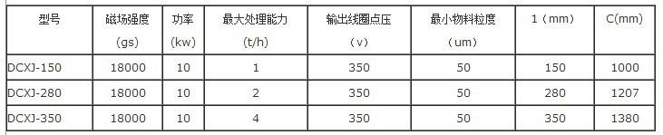 DCXJ系列電磁王干粉除鐵器細粉狀物料中去除弱磁性氧化物,屑狀銹皮等污染物。用于陶瓷、玻璃、耐火材料等非金屬礦,醫(yī)藥,化工,食品等行業(yè)純化物料。