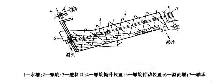 螺旋分級機是借助于固體粒大小不同,比重不同,因而在液體中的沉降速度不同的原理,細礦粒浮游在水中成溢流出,粗礦粒沉于槽底。由螺旋推向上部排出,來進行機械分級的一種分級設備,能把磨機內(nèi)磨出的料粉級于過濾,然后把粗料利用螺旋片旋片旋入磨機進料口,把過濾出的細料從溢流管子排出。該機底座采用槽鋼,機體采用鋼板焊接而成。螺旋軸的入水頭、軸頭、采用生鐵套,耐磨耐用,提升裝置分電動和手動兩種。